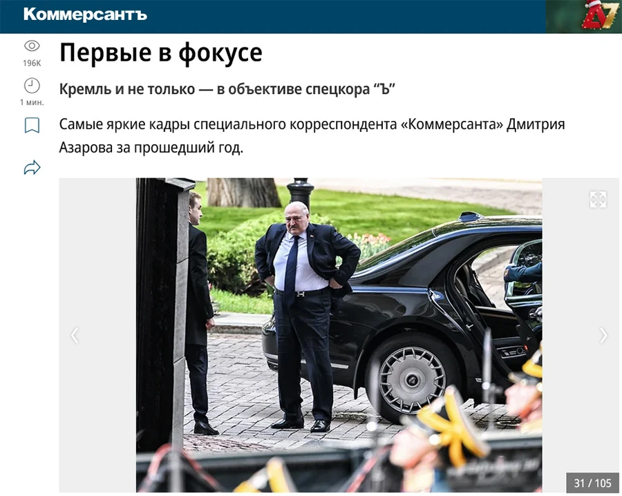 А в конце года издание слегка лягнуло правителя Беларуси. В подборку из 105 фото под названием «Первые в фокусе» включено одно-единственное фото Лукашенко. И да, как вы уже могли догадаться, из той самой скандальной серии со злосчастным ремнем и Николаем.