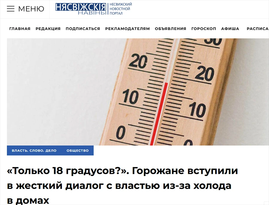 А это новости из соседнего Несвижа, где, как пишет местная районная газета, горожане вступили в жесткий диалог с властью из-за холода в домах. Издание пишет о напряженной дискуссии с участием местных чиновников и горожан, недовольных проблемой низких температут в квартирах, приносящей неудобства несколько лет подряд.