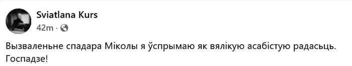 Я шчыра зычу яму сіл, здароўя і як мага хутчэй аднавіцца пасля перанесенага інсульту. Цяпер важна, каб Мікалай атрымаў патрэбнае лячэнне, цеплыню сям’і і падтрымку блізкіх.