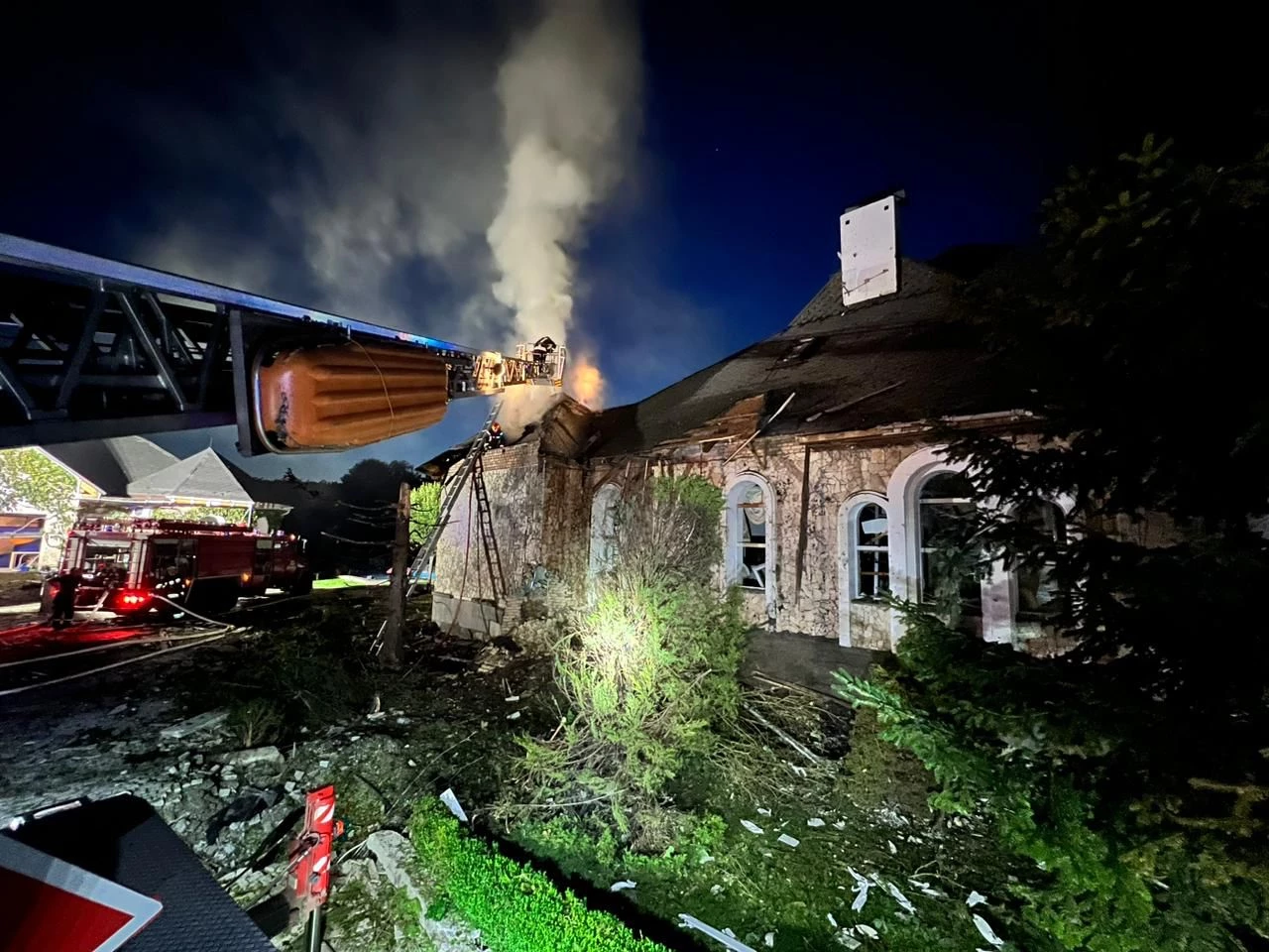 Последствия атаки «шахедов» по Бучанскому району Киевской области. МВД сообщает, что люди не пострадали.